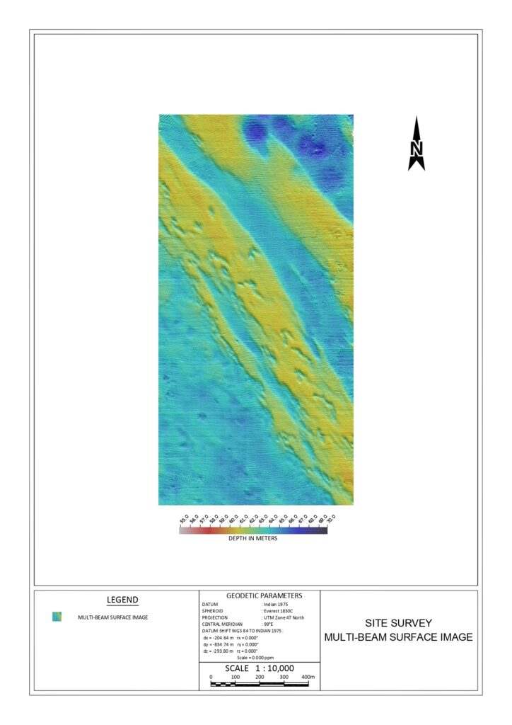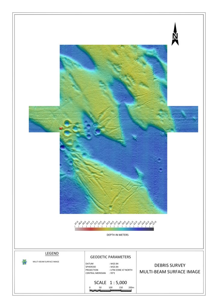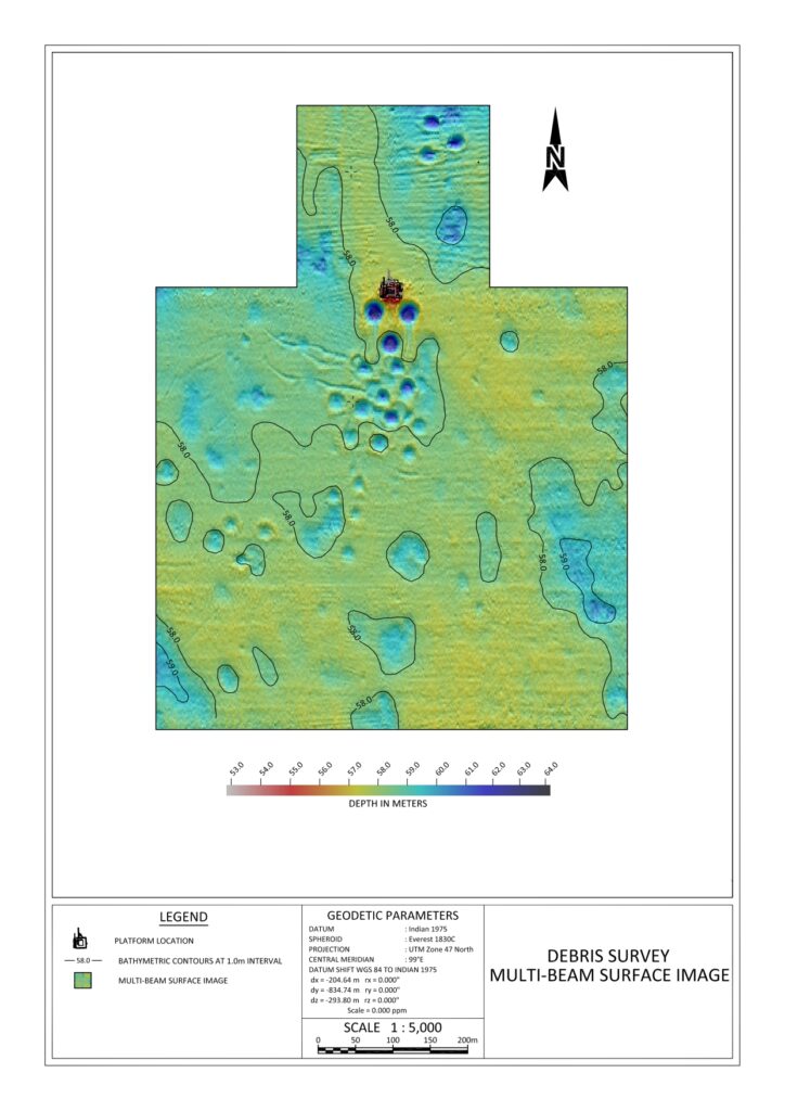 While a Debris Survey (for jack-up rigs) focuses primarily on the surface hazards, a full Geophysical Survey investigates the entire environment—extending from the water surface to several hundred meters below the seabed.
